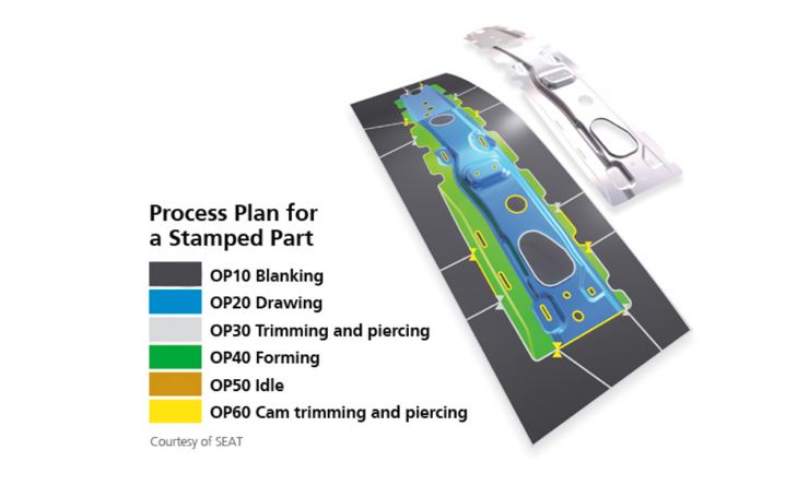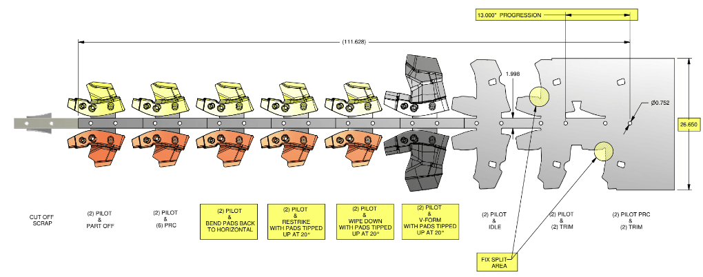 - Kalıpların pres üzerindeki dizilimi ve parçanın her istasyondaki hareketi detaylandırılır.